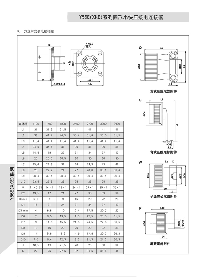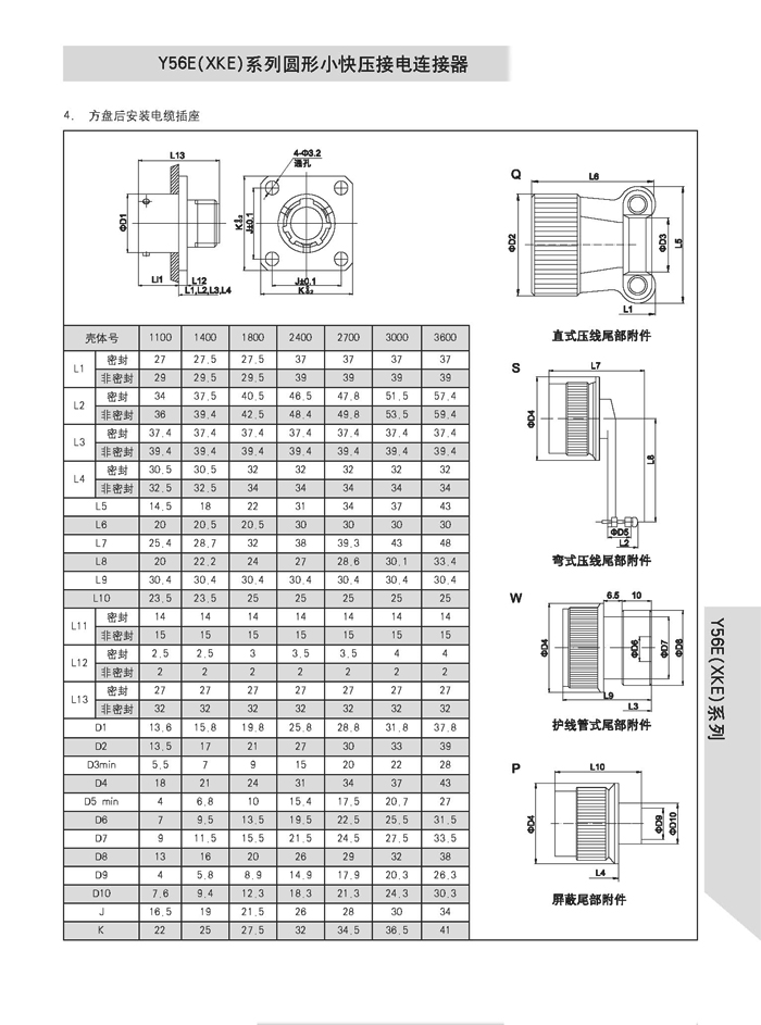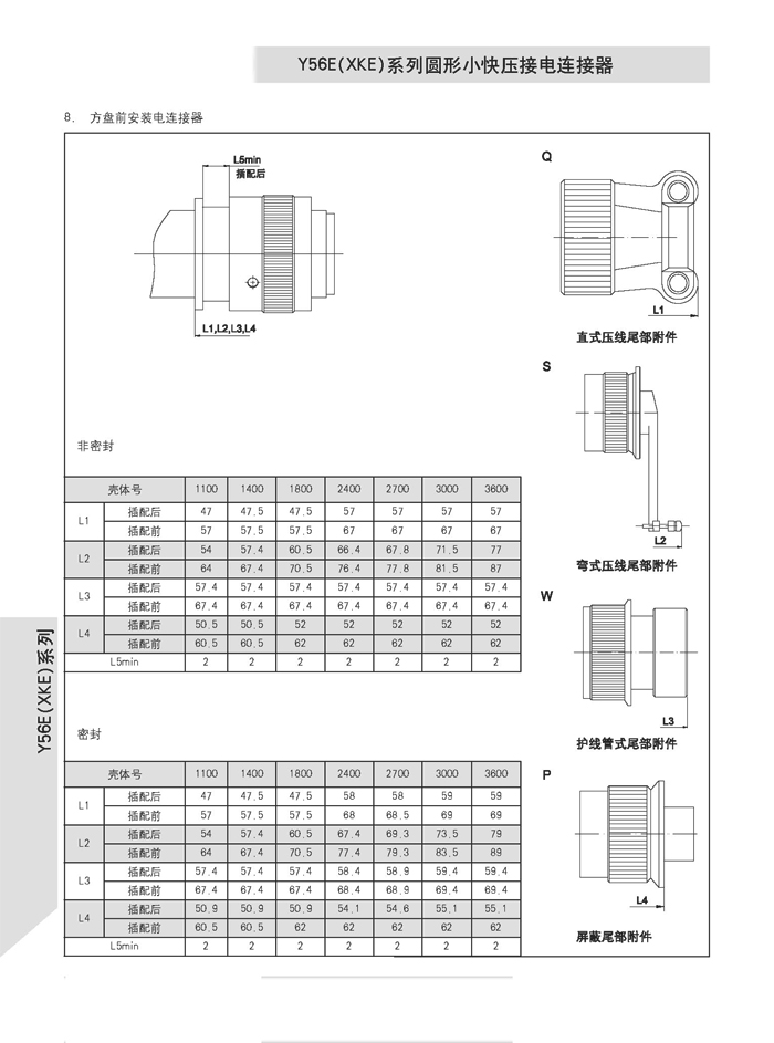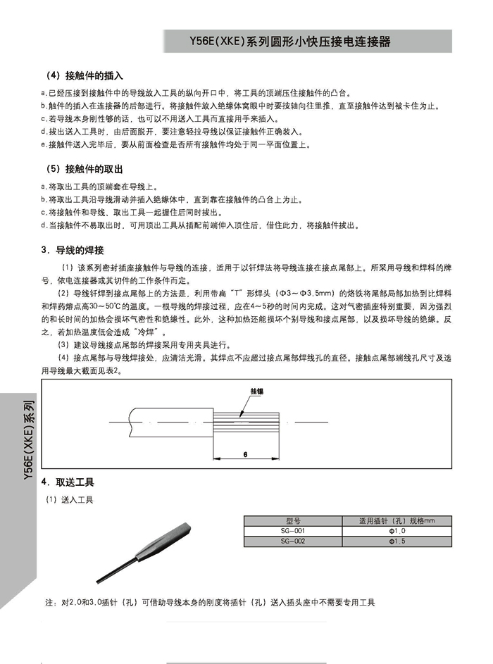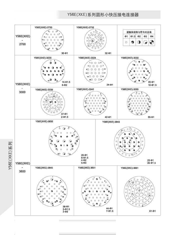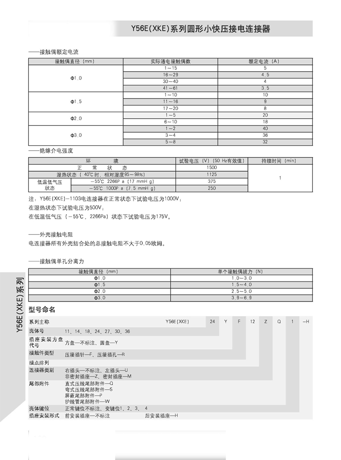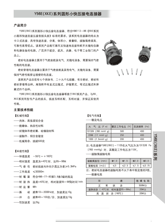 XKE圓形壓接式航空插頭,符合HB6112-86《XKE系列小圓形快速連接壓接型插頭座》標準的要求。該系列航空插頭的特點為卡口式連接,具有快速連接、分離、體積小、重量輕、接觸件密度高,可靠性高等優(yōu)點.接觸件與導(dǎo)線的連接為壓接端接(密封插座接觸件與導(dǎo)線的連接為焊接端接),接觸件可單個取出或送入,為后松后取式.該系列航空插頭有7個殼體,29個孔組,有密封,非密封品種.尾部附件有直式壓線,彎式壓線,護線管式,屏蔽式四個品種.產(chǎn)品具有可靠而又快速地連接和斷開無線電儀器和電器設(shè)備電路的特點.