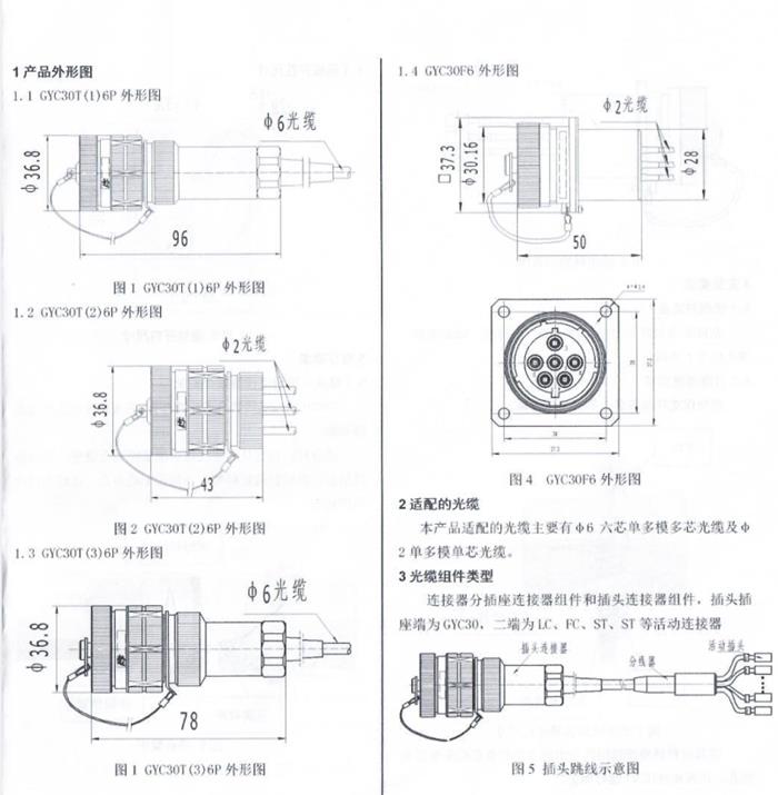 GYC30T(3)6P光纖連接器,是一個系列產(chǎn)品,適配的光纜主要有6mm六芯單多模多芯光纜及2mm單多模單芯光纜,插頭與插座