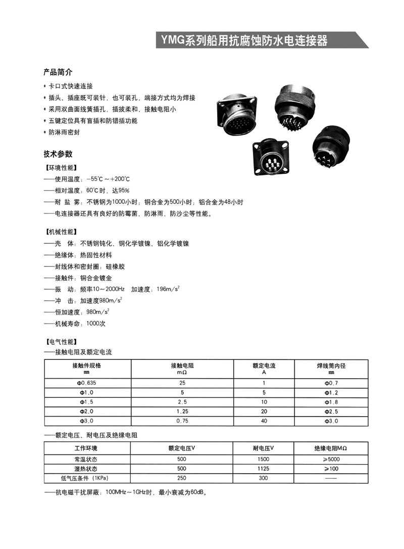 適用于濕熱環(huán)境,可耐1000小時鹽霧試驗:卡口式快速連接,插頭插座均為焊接。