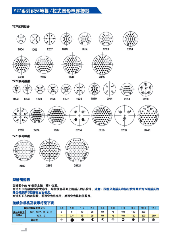 Y27G圓形推拉防水電連接器,采用推/拉式鎖緊機構; 連接可靠,連接和分離方便、快捷,適用于盲目插合或其它插合情況; 具有抗振動、防鹽霧、防電磁干擾、防塵、防雨及氣體密封等性能; 共有13 種殼體號,1~121 等18 種芯數(shù),有3~250A 等10 種電流規(guī)格; 材料為鋁合金、海軍黃銅和不銹鋼三種; Y27F、G、H 系列電連接器適用于艦船環(huán)境,具有防水密封的性能; Y27H 系列電連接器采用雙曲線插孔; 符合國家軍用標準GJB2905-97,性能參照美軍標MIL-C-38999。http://m.sdpindao.cn/Product/dadianliuhangkongchatoudianlianjieqi/
