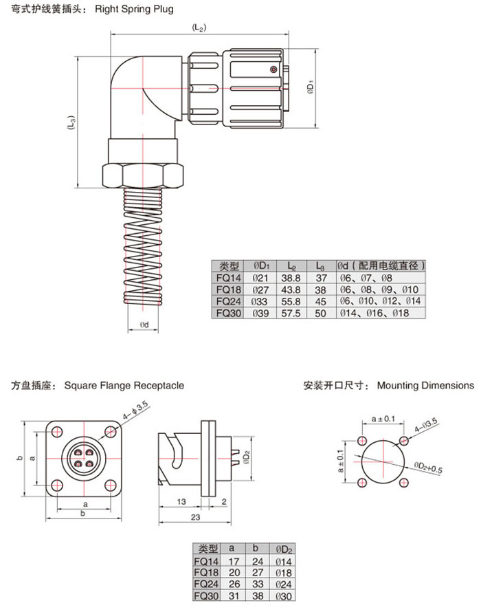 FQ-1803ZJ/TK圓形防水電連接器,接觸件3芯,2.5mm針孔,額定電流可達(dá)30A,螺旋卡口連接,插頭與插座之間有密封圈設(shè)計(jì),增加防水功能,插頭尾巴有直式和彎式,夾線(xiàn)防水尾部,出線(xiàn)孔徑客戶(hù)可選擇,訂貨數(shù)量多,可以定做不同大小的電纜罩。