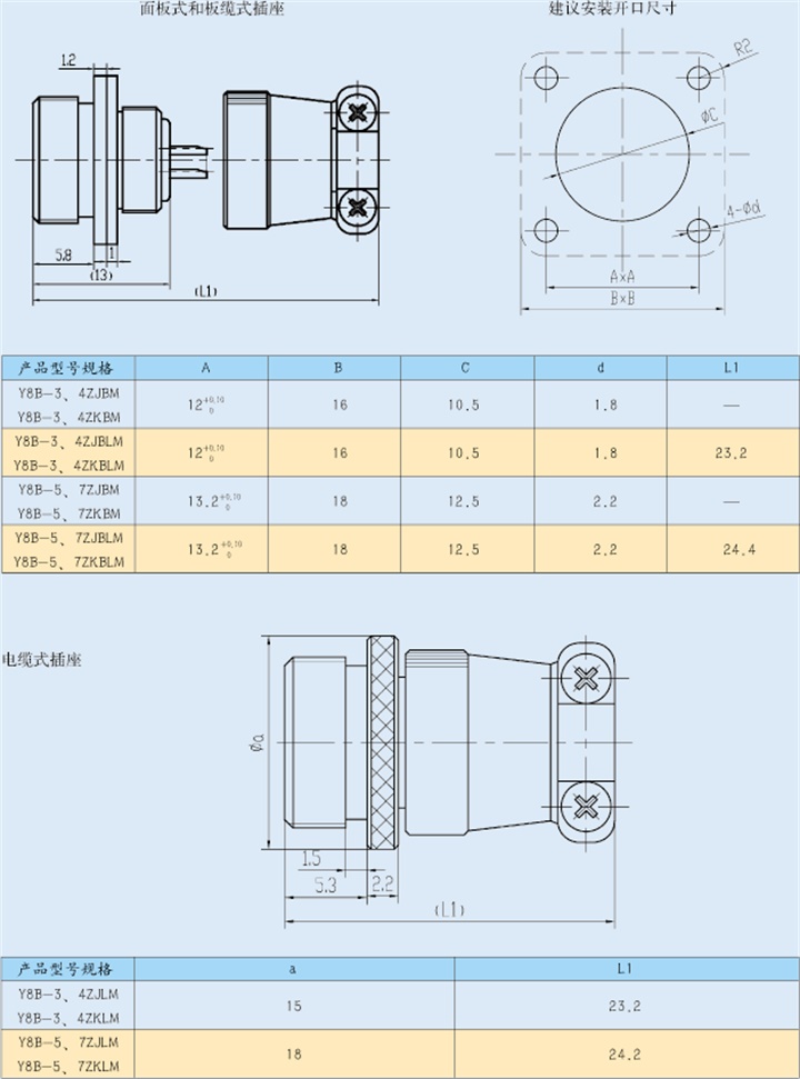 Y8B-7ZJBM/TKL密封型圓形電連接器: