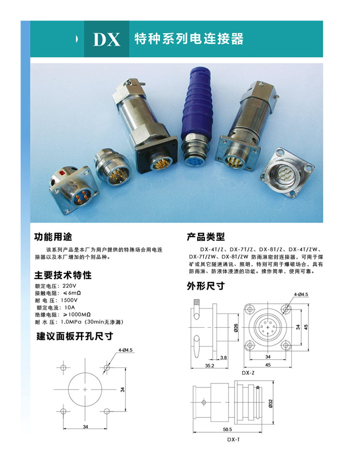 DX-7T/Z煤礦類防腐防爆電連接器,整體密封好,在淋雨,潮濕的環(huán)境下,防沙塵,防淋雨,在有火花的條件下能防爆,插頭與插座采用螺紋密封連接。選用不銹鋼材料,耐腐蝕,廣泛用于煤礦,測(cè)井,隧道燈場(chǎng)合。