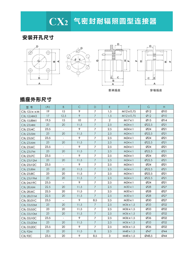 接觸件4芯,每芯額定電流50A,插座采用玻璃燒結(jié)工藝,氣密性能強,以下是產(chǎn)品芯譜和安裝尺寸。