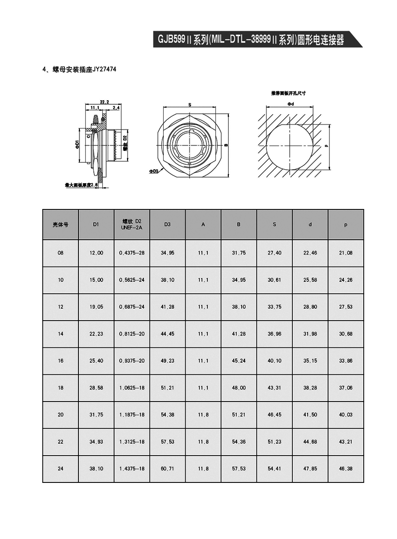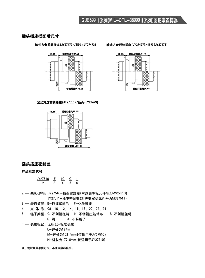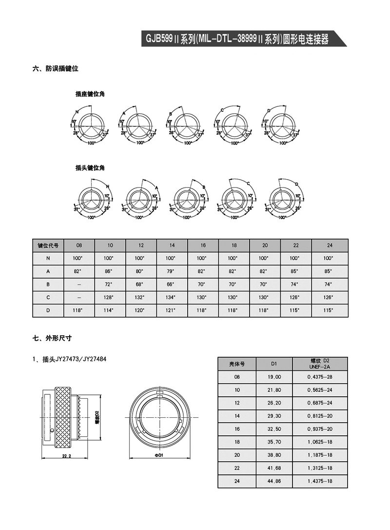 JY27473T14F19PN/SN圓形電連接器,是GJB599A(mil-dtl-38999k)標(biāo)準(zhǔn),體積最小,殼體端,適用于沒(méi)有高強(qiáng)度振動(dòng),沒(méi)有風(fēng)沙和潮濕的場(chǎng)合。