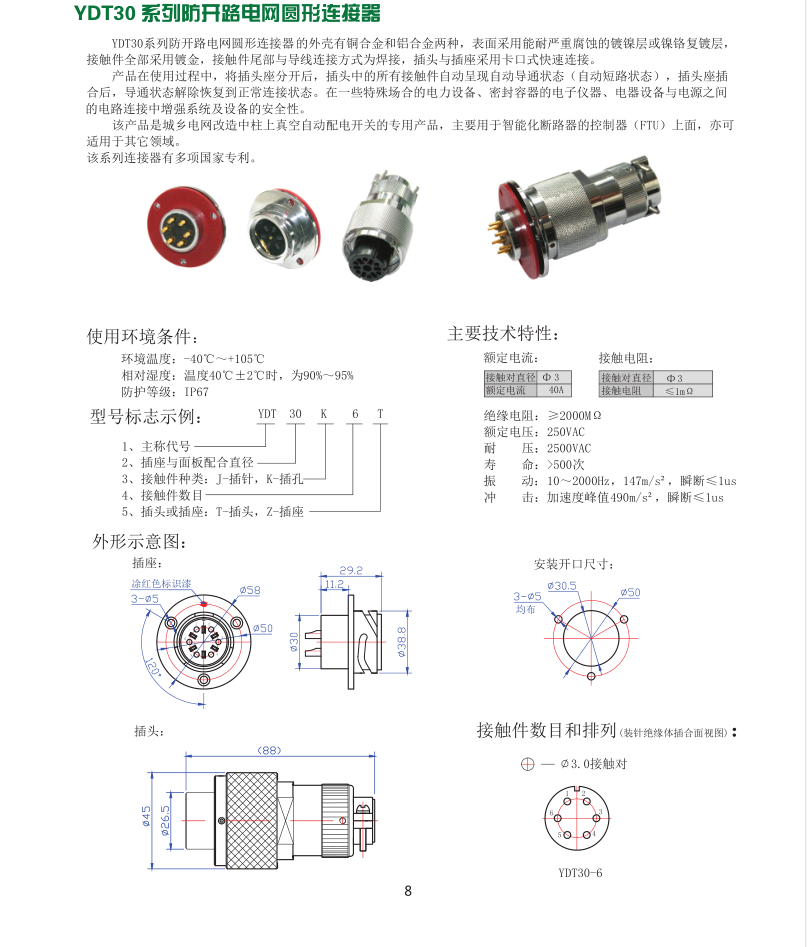 多芯防開路型智能電網(wǎng)配套連接器,常規(guī)有3芯,4芯,5芯,10芯,14芯,16芯,26芯,每種連接器排列不一樣,電流大小