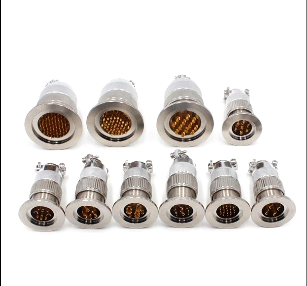 該型號(hào)是我公司新開(kāi)發(fā)產(chǎn)品,每根插針3.0mm,電流可達(dá)30A左右,表面鍍金,接觸電阻小,插拔柔和,無(wú)打火花現(xiàn)象。 采用KF40法蘭固定形式,安裝方便快捷。插針固定采用玻璃燒結(jié)工藝,密封性能好,廣泛用于真空設(shè)備,密封容器中, 在抽壓,或施壓狀態(tài)下,不漏氣,正常電流或信號(hào)的輸送。與插頭現(xiàn)有兩種連接方式,螺紋和螺旋卡口連接,建議選用 卡口鎖緊,連接不費(fèi)力,三只鉚釘雙重鎖緊。