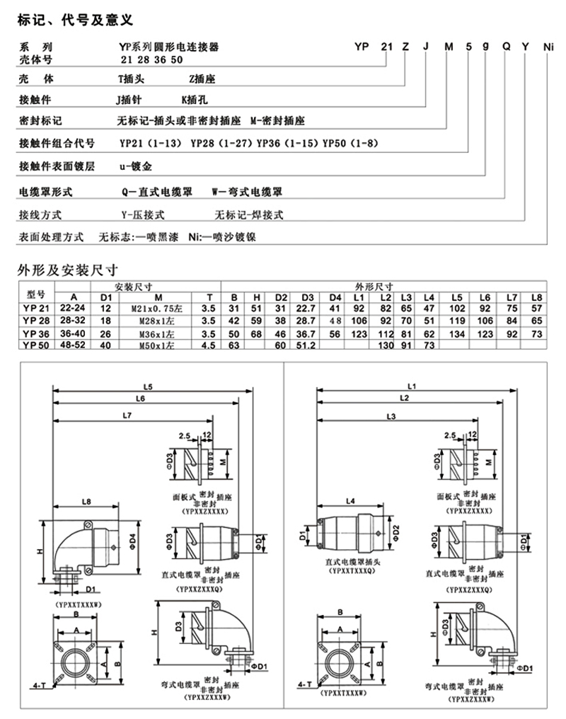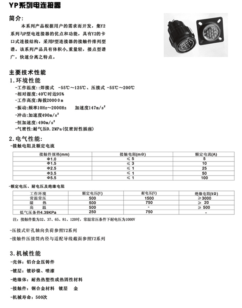 YP系列機(jī)車專用航空插頭根據(jù)用戶的需求而開發(fā),集Y2系列與P型電連接器的優(yōu)點(diǎn)和功能,具有Y2的卡口式連接結(jié)構(gòu),采用P型連接器的接觸件排列型譜。該系列產(chǎn)品具有體積小,重量輕,接點(diǎn)型譜廣,快速分離之特點(diǎn)。