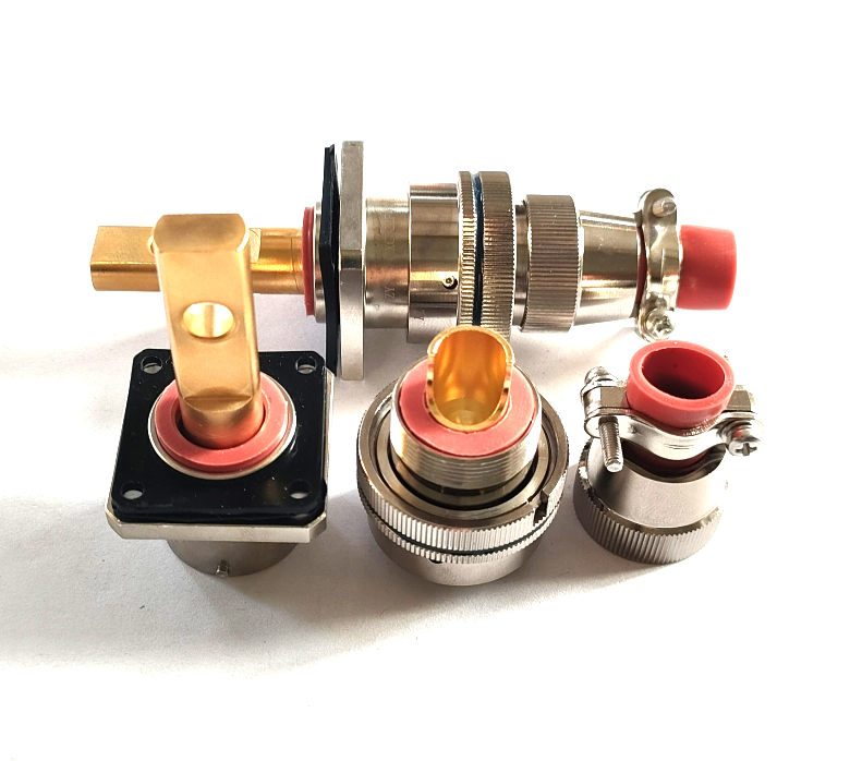 200A單芯玻璃燒結(jié)真空密封卡口式連接器,尺寸大小是借用GJB2889系列標(biāo)準(zhǔn),插座采用玻璃燒結(jié)工藝,